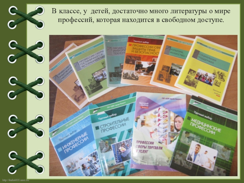 Слайд 19В классе, у детей, достаточно много литературы о мире профессий, которая