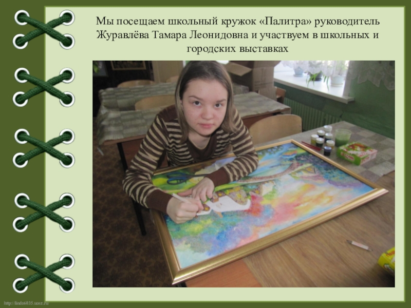 Слайд 16Мы посещаем школьный кружок «Палитра» руководитель Журавлёва Тамара Леонидовна и участвуем