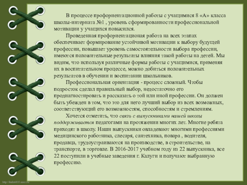 Слайд 29В процессе профориентационной работы с учащимися 8 «А» класса школы-интерната №1