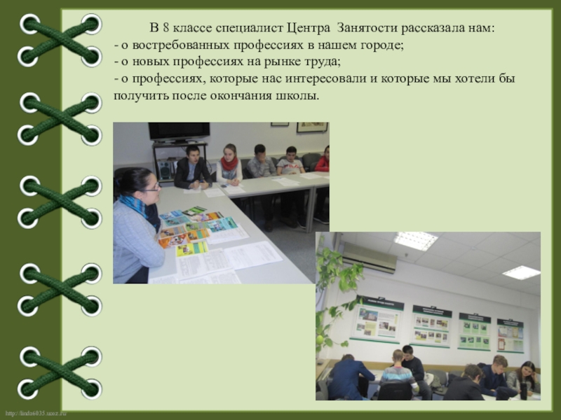 Слайд 11В 8 классе специалист Центра Занятости рассказала нам: