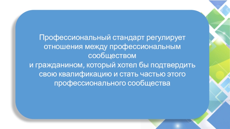 Профессиональный стандарт регулирует отношения между профессиональным сообществом и гражданином, который хотел бы подтвердить свою квалификацию и стать частью этого профессионального сообщества