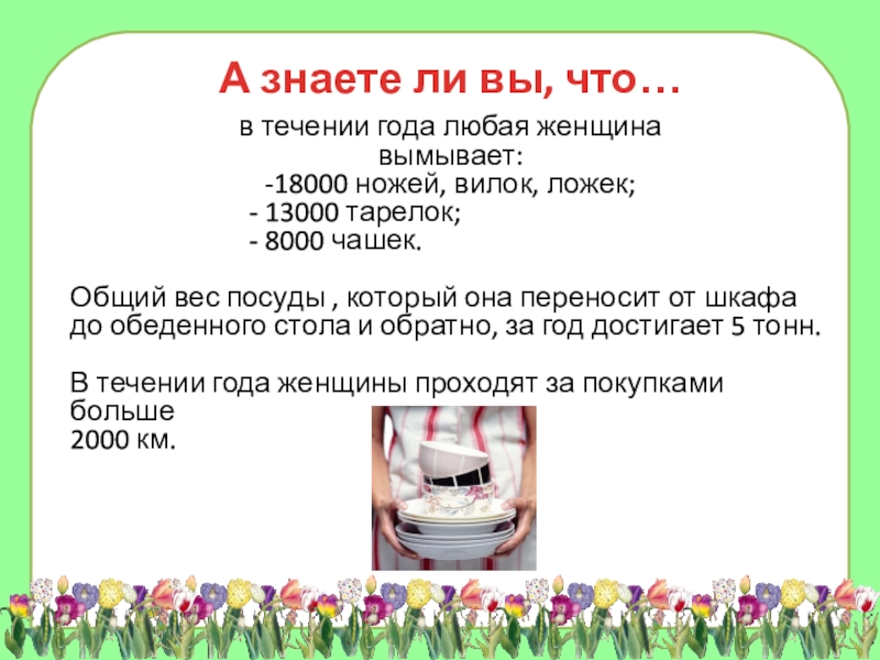 А знаете ли вы, что…в течении года любая женщина вымывает: -18000 ножей, вилок, ложек;