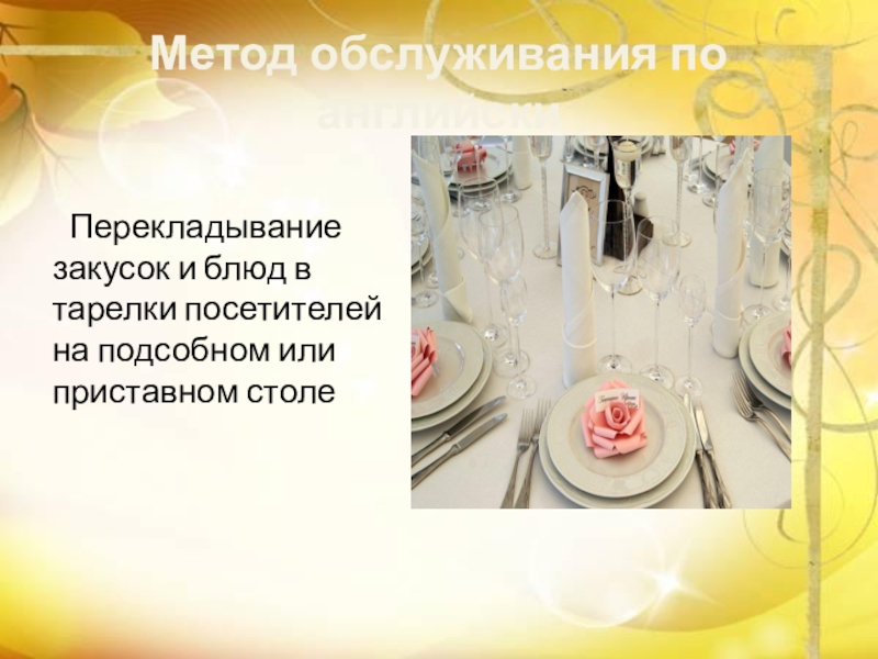 виды обслуживания посетителей и сложную сервировку в ресторанах,