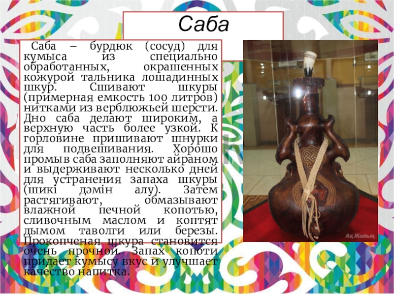 Саба – бурдюк (сосуд) для кумыса из специально обработанных, окрашенных кожурой