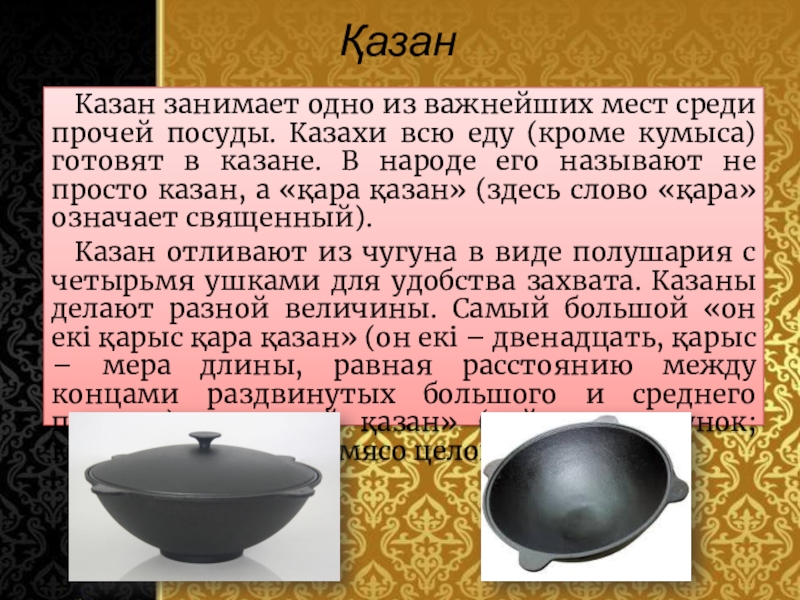 Казан занимает одно из важнейших мест среди прочей посуды. Казахи всю