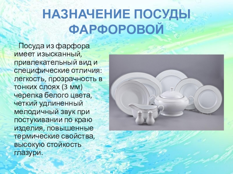 Посуда из фарфора имеет изысканный, привлекательный вид и специфические