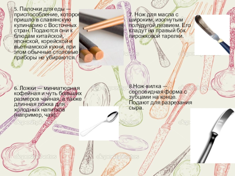 Слайд 315. Палочки для еды — приспособление, которое пришло в славянскую кулинарию