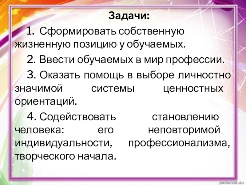 1. Сформировать собственную жизненную позицию у обучаемых.