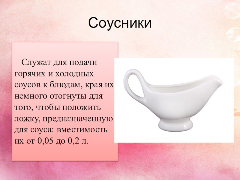 Служат для подачи горячих и холодных соусов к блюдам, края их