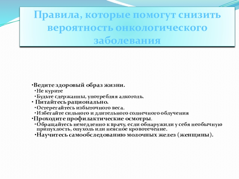 Пища должна быть богата продуктами растительного происхождения и витаминами, особенно А, В, С, Е, которые оказывают на канцерогенез ингибирующее воздействие.