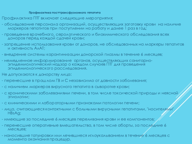 - запрещение использования крови от доноров, не обследованных на маркеры гепатитов и активность АлАТ;