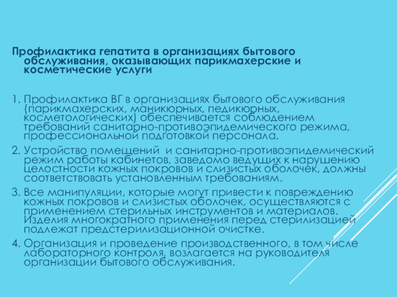 Слайд 11Профилактика гепатита в организациях бытового обслуживания, оказывающих парикмахерские и косметические услуги