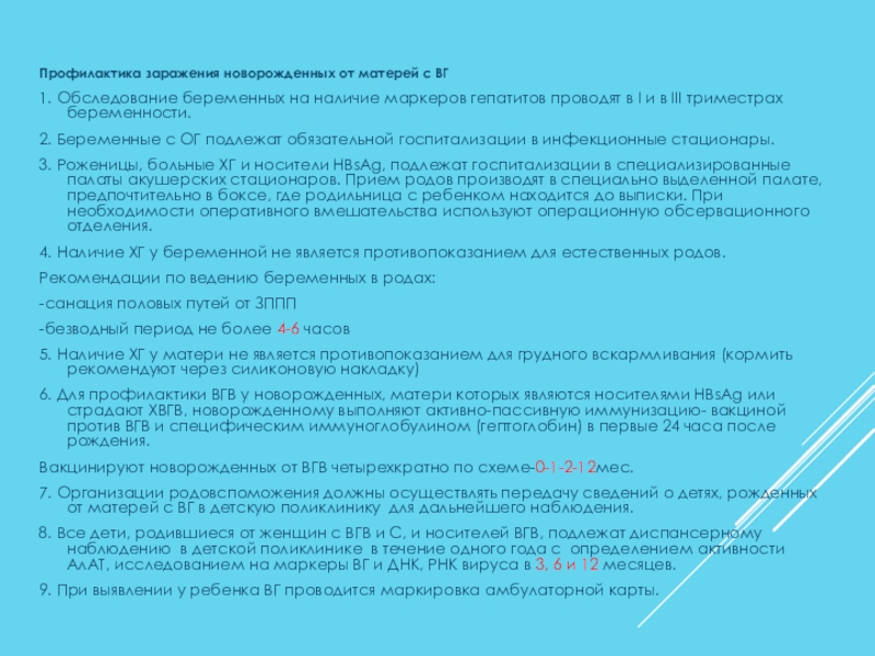 Слайд 10Профилактика заражения новорожденных от матерей с ВГ