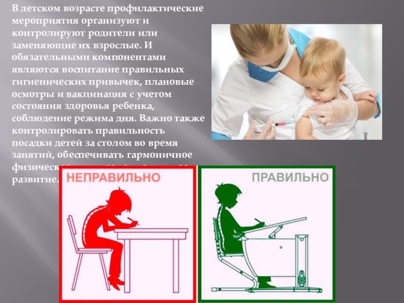 Слайд 9В детском возрасте профилактические мероприятия организуют и контролируют родители или заменяющие