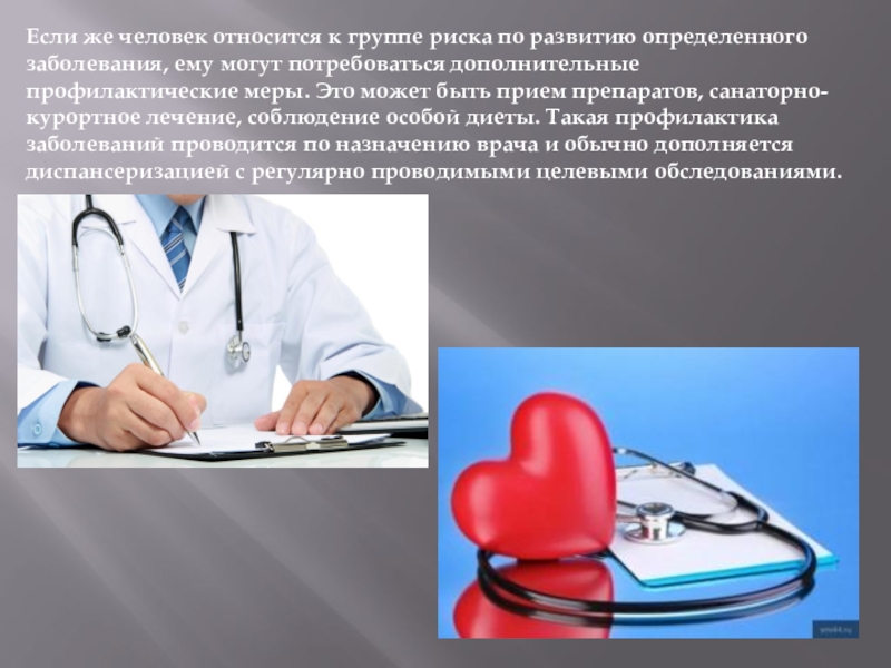 Слайд 12Если же человек относится к группе риска по развитию определенного заболевания,