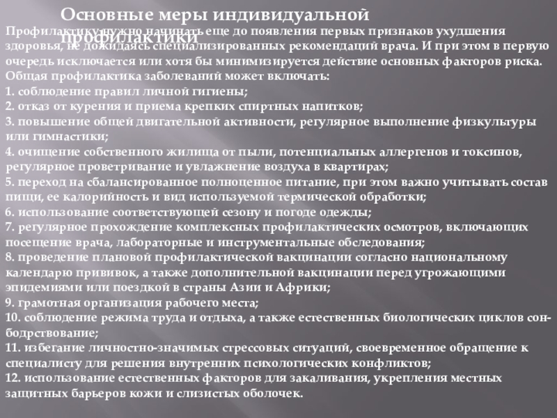 Слайд 8Основные меры индивидуальной профилактики