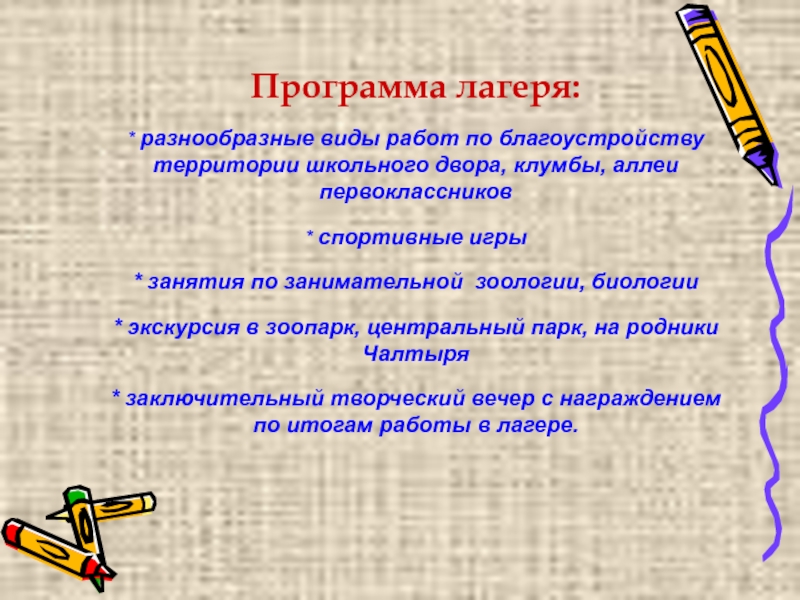 Это сайт презентаций, где можно хранить и обмениваться своими презентациями, докладами, проектами, шаблонами в формате PowerPoint с другими пользователями. Мы помогаем школьникам, студентам, учителям, преподавателям хранить и обмениваться учебными материалами.