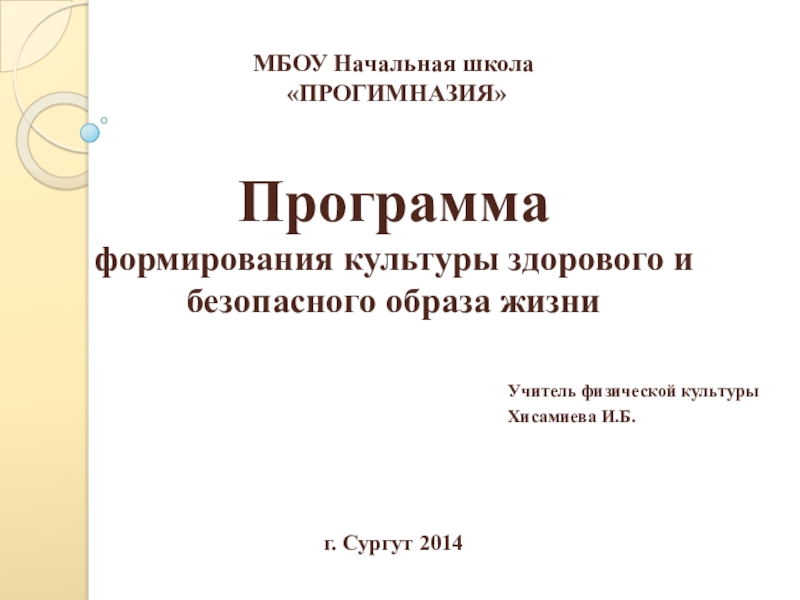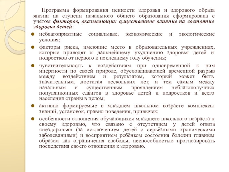 Слайд 4 Программа формирования ценности здоровья и здорового образа жизни на ступени начального