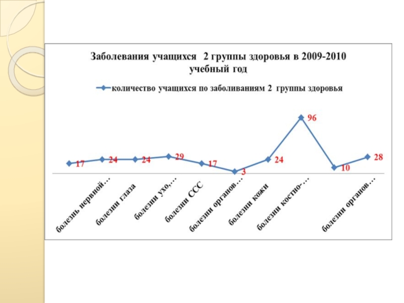 Слайд 25 Сравнивая данные диаграммы, отметим положительный результат: из имеющихся заболеваний у детей