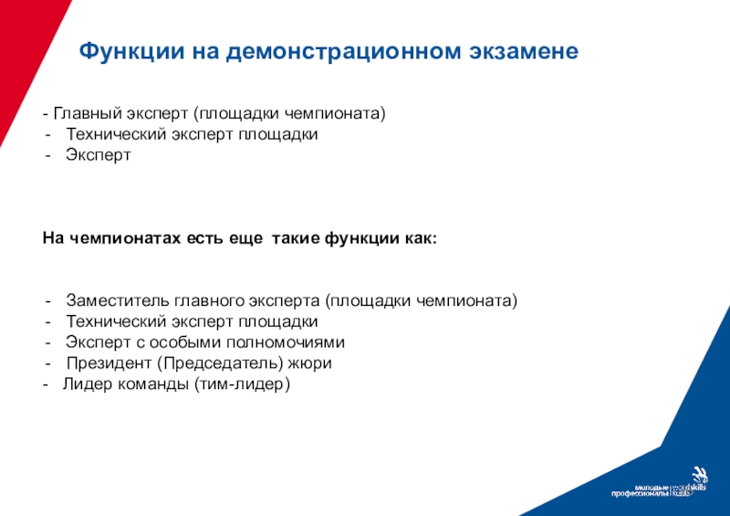 - Заместитель Главного эксперта (не применяется на ДЭ);