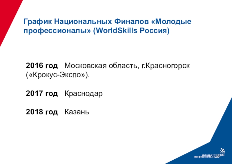 График Национальных Финалов «Молодые профессионалы» (WorldSkills Россия)