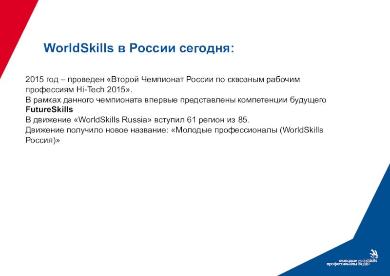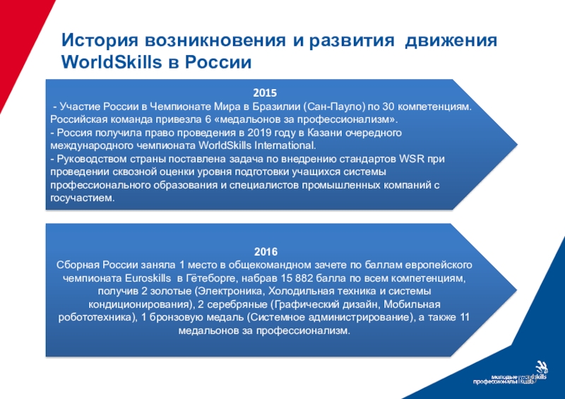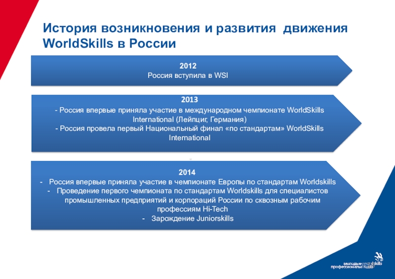 Слайд 20История возникновения и развития движения WorldSkills в России