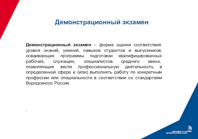 Слайд 9Демонстрационный экзамен по стандартам WorldSkills