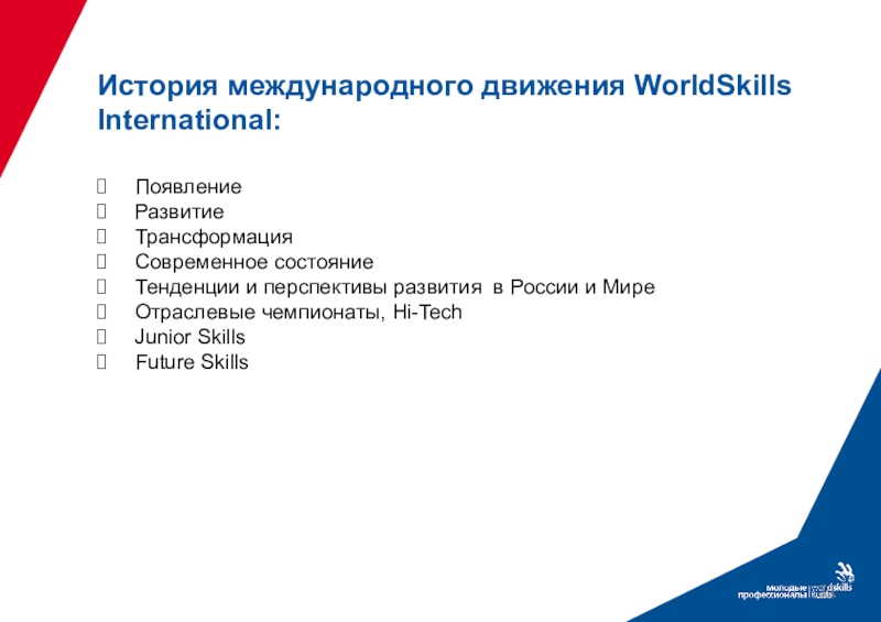 Слайд 19История возникновения и развития движения WorldSkills в России