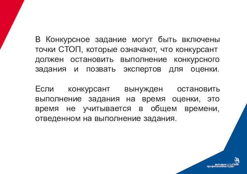 - оценка может быть произведена только после того, как участник закончил выполнение модуля/задания или по достижении точки «СТОП»;