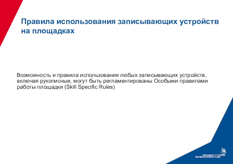 Слайд 123Возможность и правила использования любых записывающих устройств, включая рукописные, могут быть