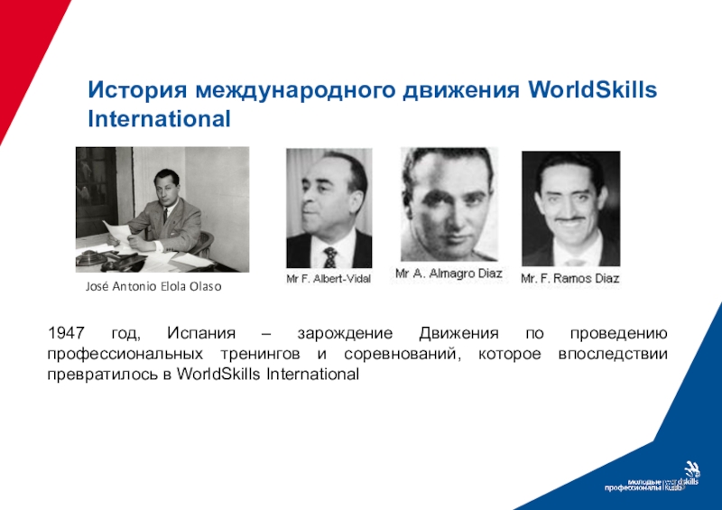 Слайд 141950 год – первый международный чемпионат по рабочим профессиям Испания-Португалия (12