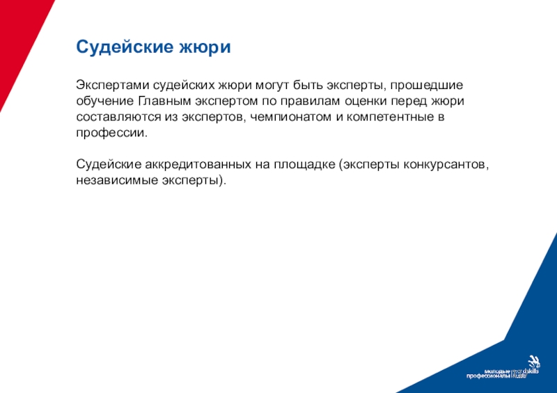 Экспертами судейских жюри могут быть эксперты, прошедшие обучение Главным экспертом