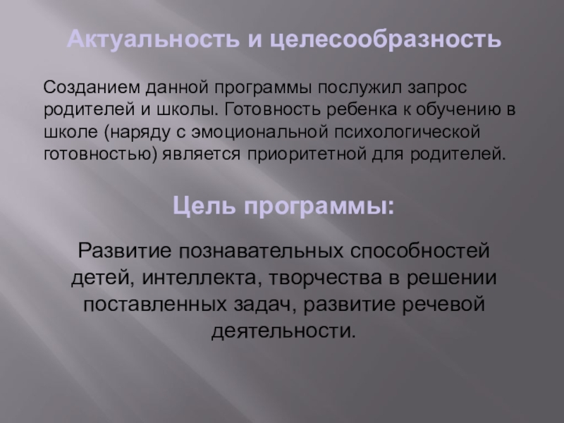 Развитие познавательных способностей детей, интеллекта, творчества в решении поставленных задач, развитие речевой деятельности.