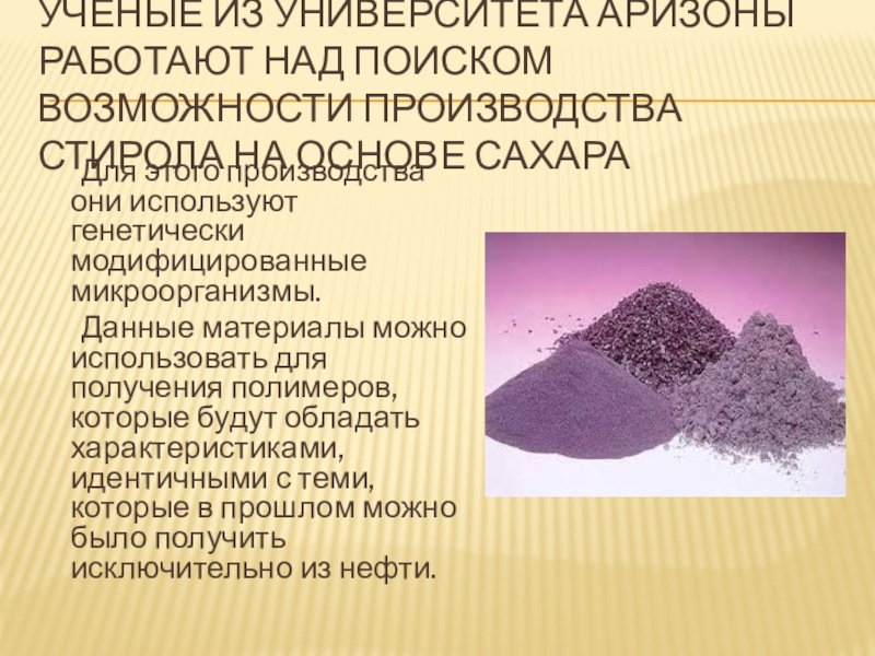 Данные материалы можно использовать для получения полимеров, которые будут обладать характеристиками, идентичными с теми, которые в прошлом можно было получить исключительно из нефти.