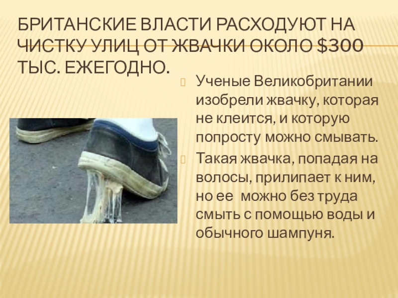 Ученые Великобритании изобрели жвачку, которая не клеится, и которую попросту можно смывать.