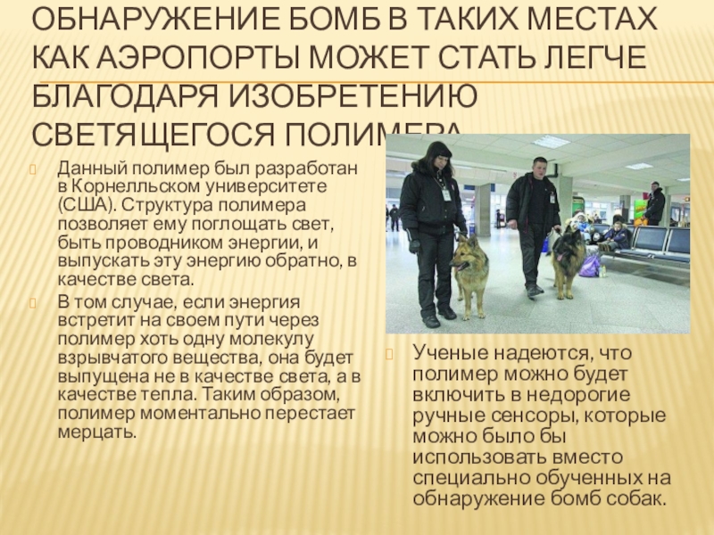 Ученые надеются, что полимер можно будет включить в недорогие ручные сенсоры, которые можно было бы использовать вместо специально обученных на обнаружение бомб собак.