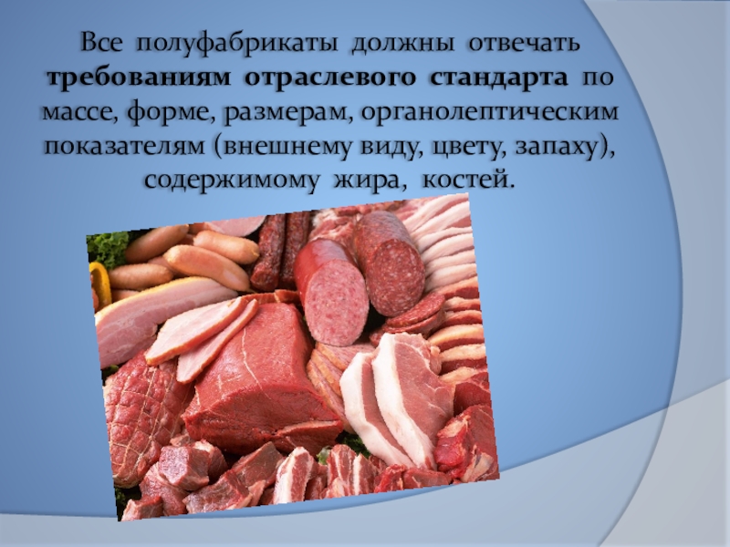 Слайд 1ПРОИЗВОДСТВО ПОЛУФАБРИКАТОВ ИЗ МЯСА