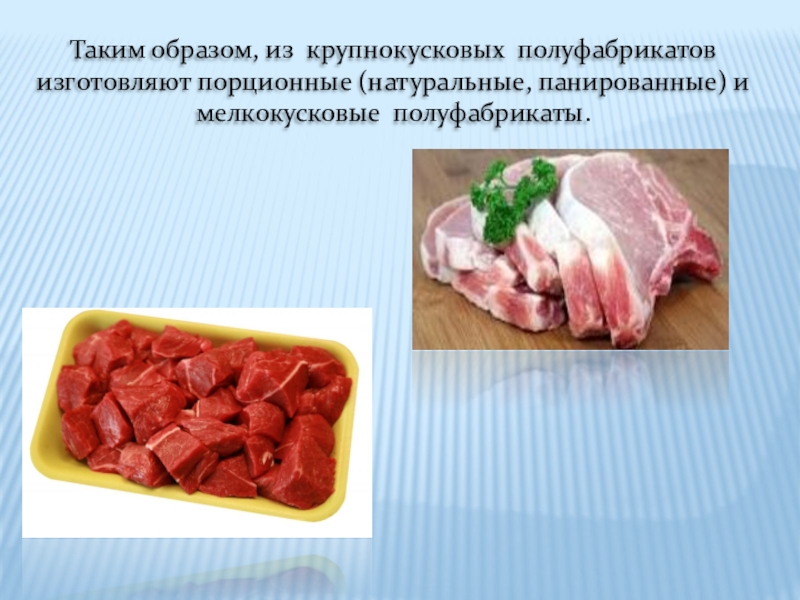 Слайд 9Таким образом, из крупнокусковых полуфабрикатов изготовляют порционные (натуральные, панированные) и мелкокусковые