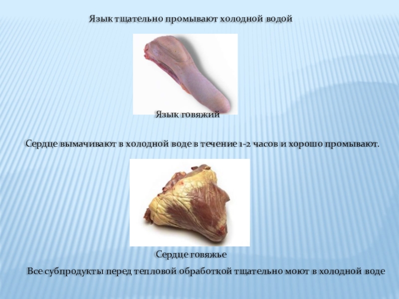 Все субпродукты перед тепловой обработкой тщательно моют в холодной воде
