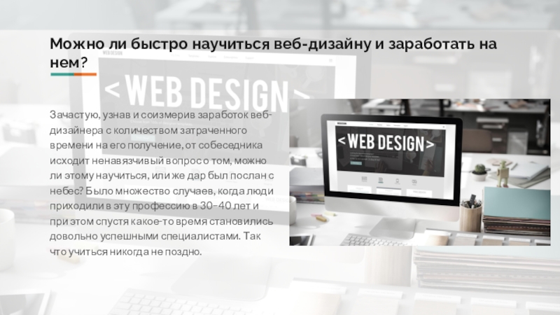 Слайд 13Можно ли быстро научиться веб-дизайну и заработать на нем?