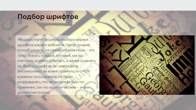 Не существует формулы выбора верных шрифтов вашего вебсайта. Часто лучший