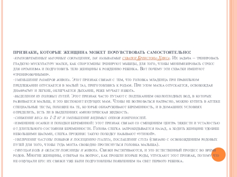 Слайд 6признаки, которые женщина может почувствовать самостоятельно: