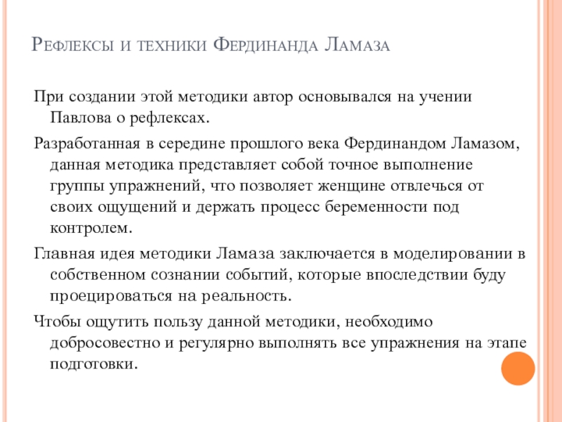 Слайд 17Рефлексы и техники Фердинанда Ламаза