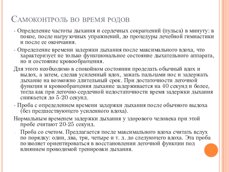 - Проба с определением времени задержки дыхания после обычного выдоха (без предшествующего усиленного вдоха).