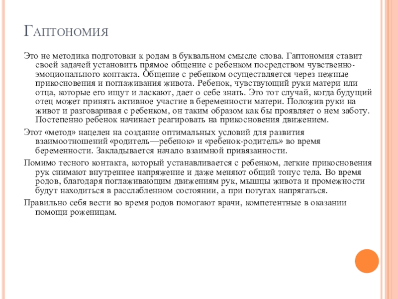 Это не методика подготовки к родам в буквальном смысле слова. Гаптономия