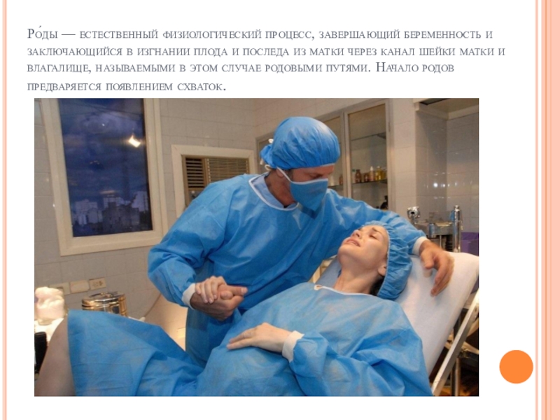 Слайд 5Ро́ды — естественный физиологический процесс, завершающий беременность и заключающийся в изгнании