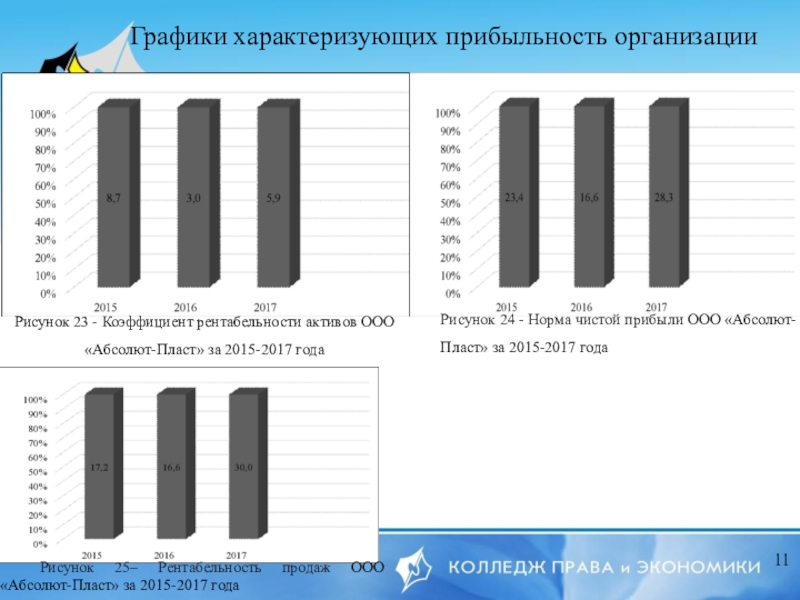 Рисунок 25– Рентабельность продаж ООО «Абсолют-Пласт» за 2015-2017 года