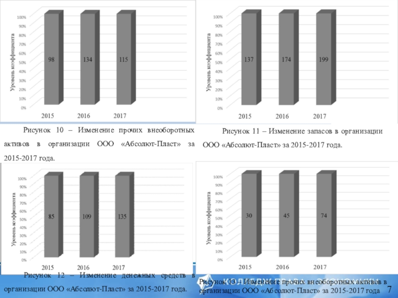 Рисунок 12 – Изменение денежных средств в организации ООО «Абсолют-Пласт» за 2015-2017 года.