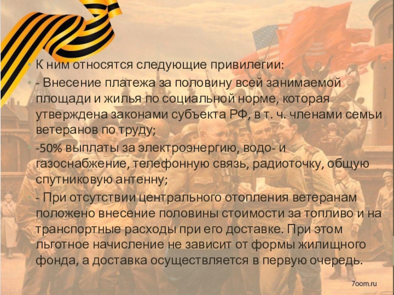 Слайд 4Ветеранам Великой Отечественной войны предоставляются бесплатно: