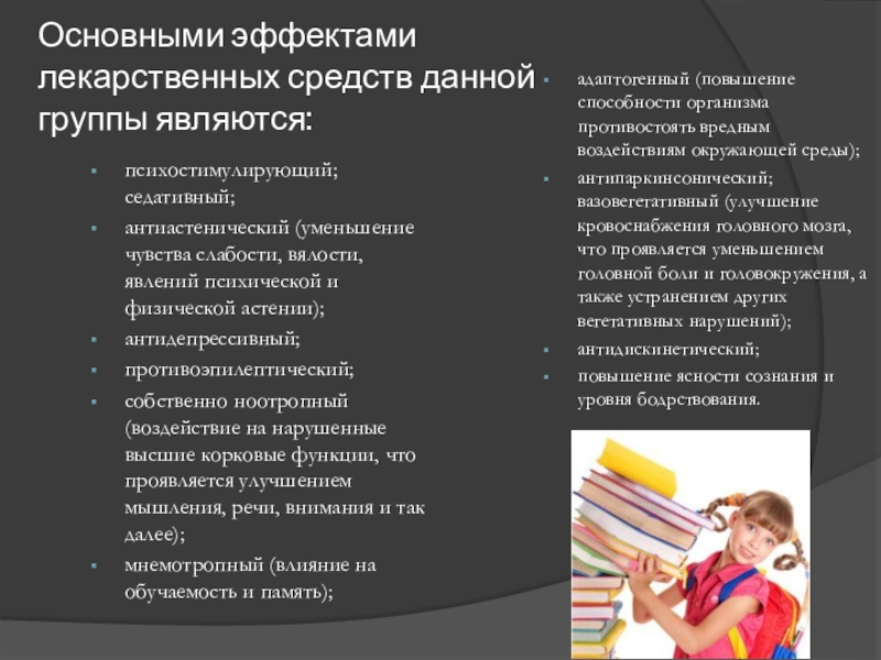 эффекты с избирательностью действия на психопатологическую симптоматику.